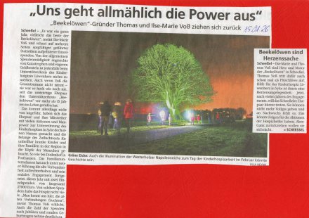 Eine lange Zeit ist vergangen, in der wir nicht direkt in Kontakt treten konnten. Trotzdem und gerade vielleicht deswegen sind viele spektakuläre Dinge möglich gewesen. Ich denke nur mal an die Illumination der Kirche und der BeekeSchule anlässlich des Tages der Kinderhospizarbeit im Februar. Das Absurde an dieser Coronazeit ist ja, dass man immer weniger Antrieb hat, etwas auf die Beine zu stellen.